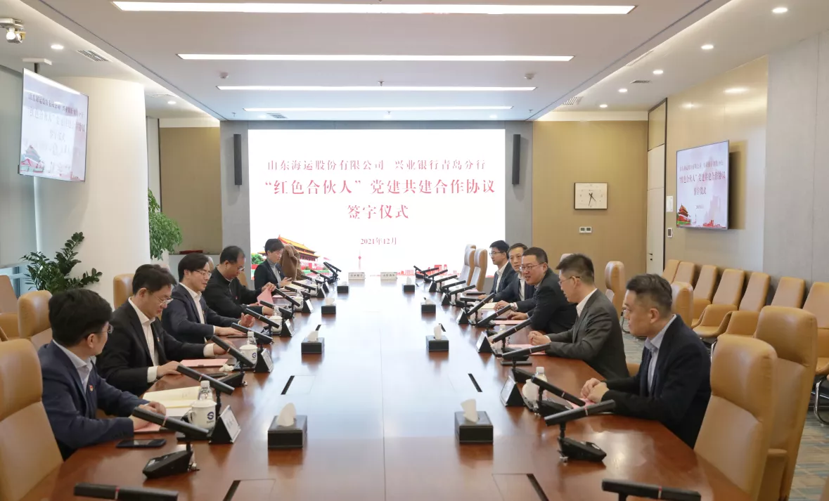 12月21日,海運股(gu)份與興(xing)業銀(yin)行(xing)青島分行(xing)舉行(xing)“紅色合伙人”黨建(jian)共建(jian)簽約儀式(shi),雙方領(ling)導出席儀式(shi)并致辭。