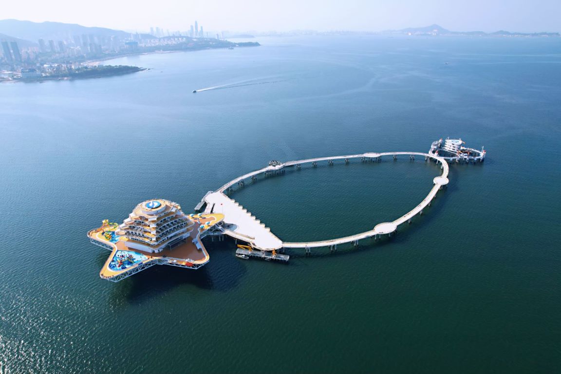 從(cong)空中俯瞰(kan),一(yi)條鑲(xiang)嵌(qian)在(zai)蔚(yu)藍海(hai)(hai)(hai)(hai)面上(shang)的(de)寶石項(xiang)鏈,光彩奪目,這便是山東(dong)海(hai)(hai)(hai)(hai)洋(yang)集團“耕(geng)海(hai)(hai)(hai)(hai)1號”海(hai)(hai)(hai)(hai)洋(yang)牧場綜合(he)體平臺(tai)。7月(yue)中下(xia)旬(xun),在(zai)漁(yu)人(ren)碼頭外側、“四十里灣(wan)”海(hai)(hai)(hai)(hai)域(yu),距離海(hai)(hai)(hai)(hai)岸線2公里處,記者乘坐(zuo)“東(dong)山一(yi)號”客船來到該綜合(he)體平臺(tai),和當天的(de)游客們共同(tong)領略了這個(ge)入選“十大(da)科技創新成果(guo)”項(xiang)目的(de)風采。
